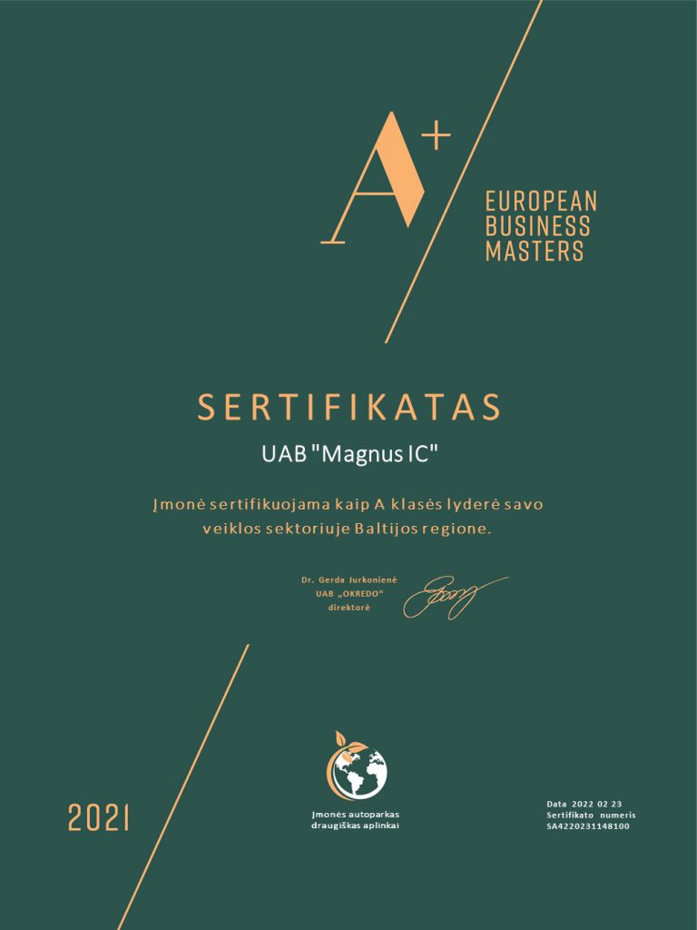 Acest certificat este o recunoaștere prestigioasă, acordată doar companiilor care îndeplinesc unele dintre cele mai stricte criterii de evaluare de pe piață. Companiile sunt certificate ca lideri de clasă A, demonstrând o creditabilitate ridicată în categoria lor de dimensiune și sector de afaceri.